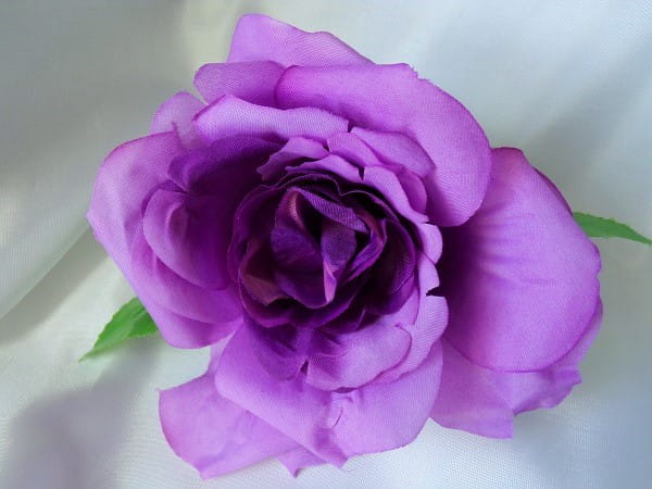 Ozdoba, dekoracja na samochód - róża rozkwitnięta z listkami i ratanem.