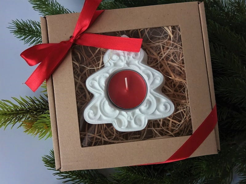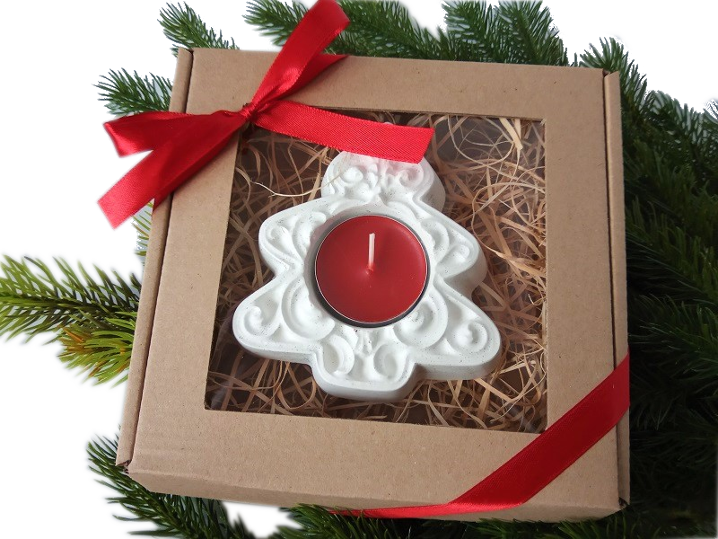 P21 Świecznik - choinka z czerwonym tealightem w pudełku