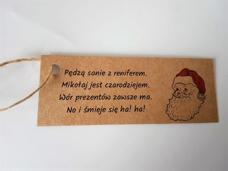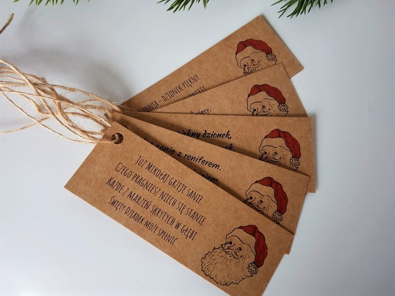 Świąteczne bileciki do prezentów na Mikołajki, Święta Bożego Narodzenia.