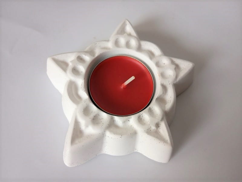 P33 Świecznik - gwiazdka z czerwonym tealightem w pudełku z bilecikiem