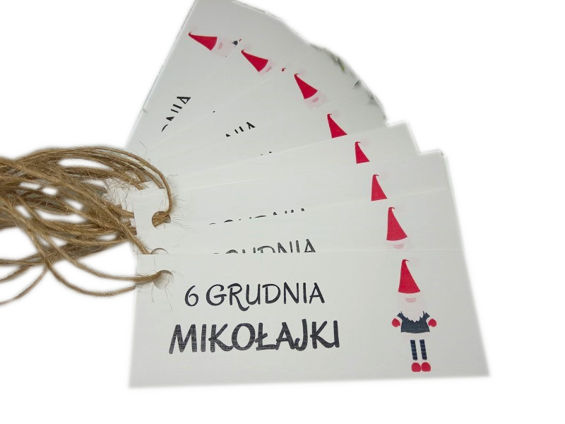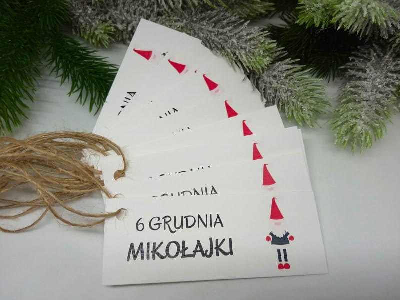 Świąteczne bileciki do prezentów na Mikołajki.