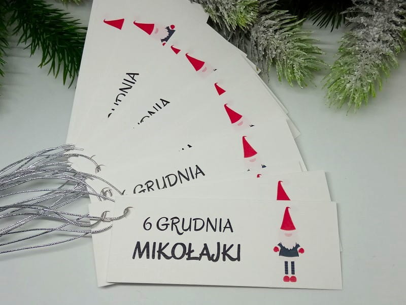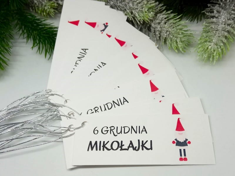 Świąteczne bileciki do prezentów na Mikołajki.