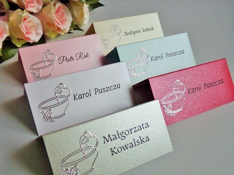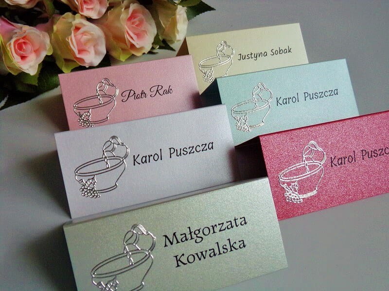 - listy gości (proszę wpisać tak jak ma być na winietce, np. Babcia Ania, Dziadek Adam, Ciocia Monika, Anna Kowalska, w odpowiedniej formie, z zachowaniem dużych i małych liter. Lista gości jest kopiowana (nie wpisywana), nie sprawdzamy jej, dlatego proszę o bezbłędne podanie (jeśli w liście gości będą błędy, nawet literówki, nie będą one poprawione).