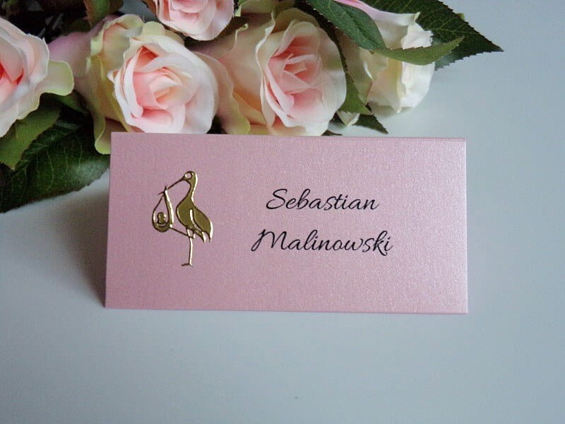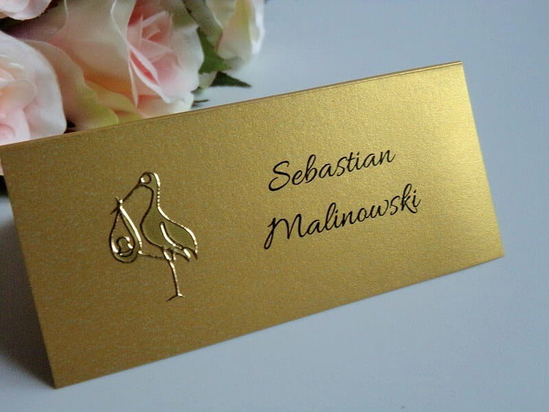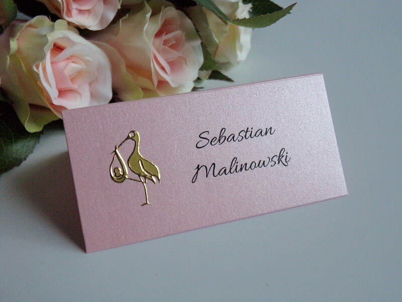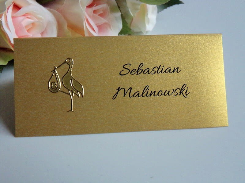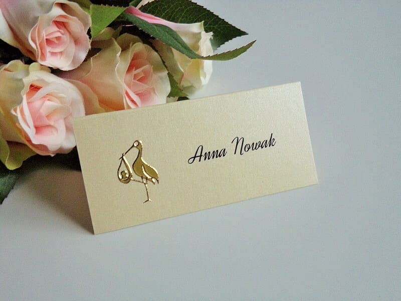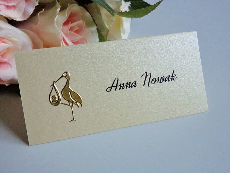 Perłowa winietka na chrzciny, chrzest ze złotą aplikacją - bocianem * KOLORY