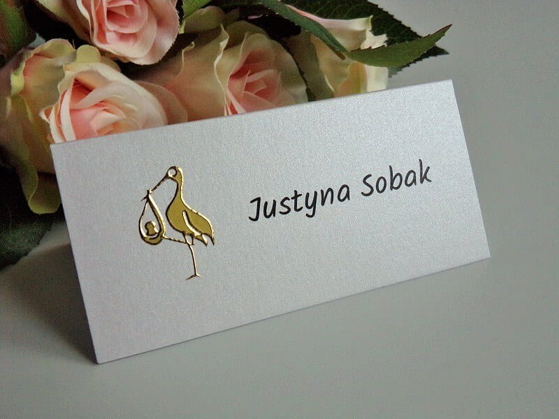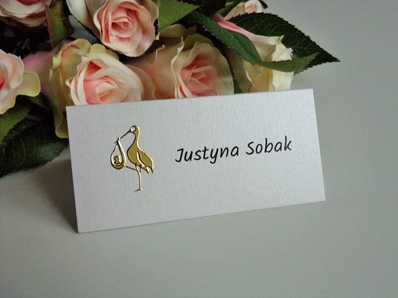 Winietka wykonana jest z papieru perłowego. Zdobi ją złota aplikacja.