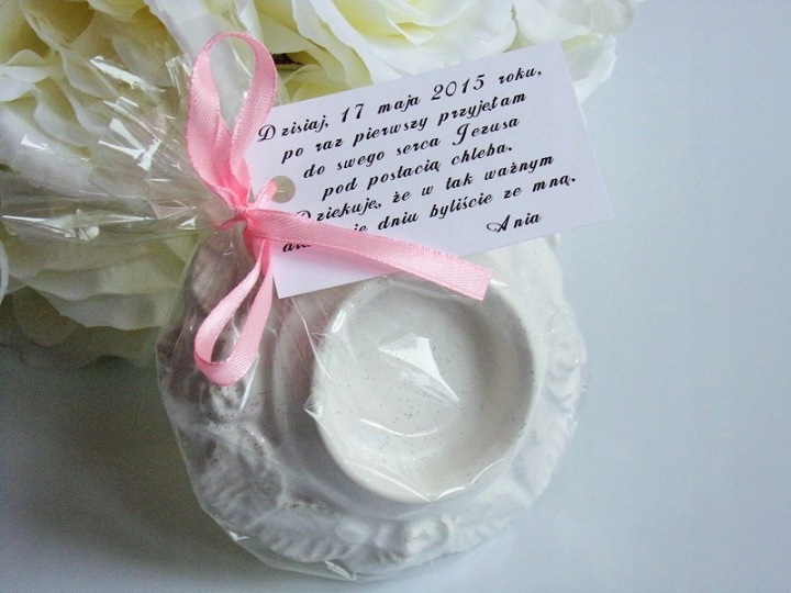 Dzisiaj Ania do Komunii Świętej przystępuje, i Panu Jezusowi serce swe ofiaruje. Za Twą obecność chcę podziękować i na pamiątkę drobiazg ofiarować.