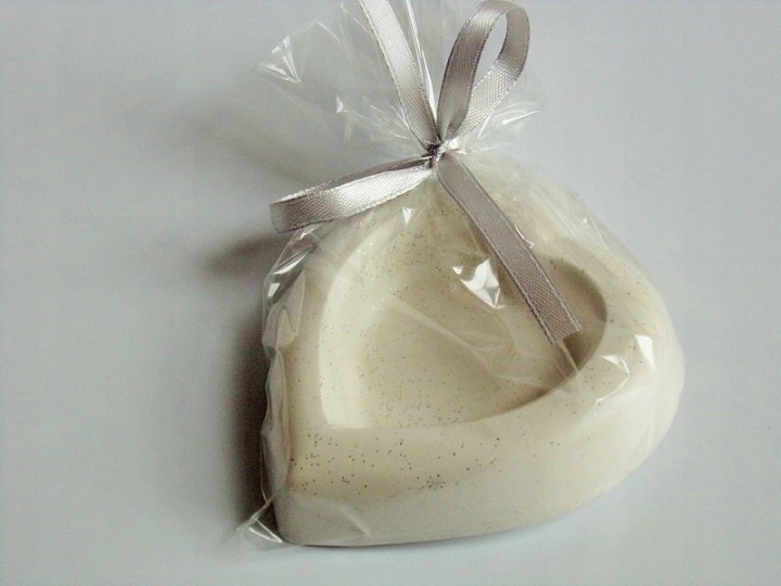 1szt podziękowania - jedna gipsowa ozdoba zapakowana w celafonowy woreczek przewiązany satynową tasiemką.