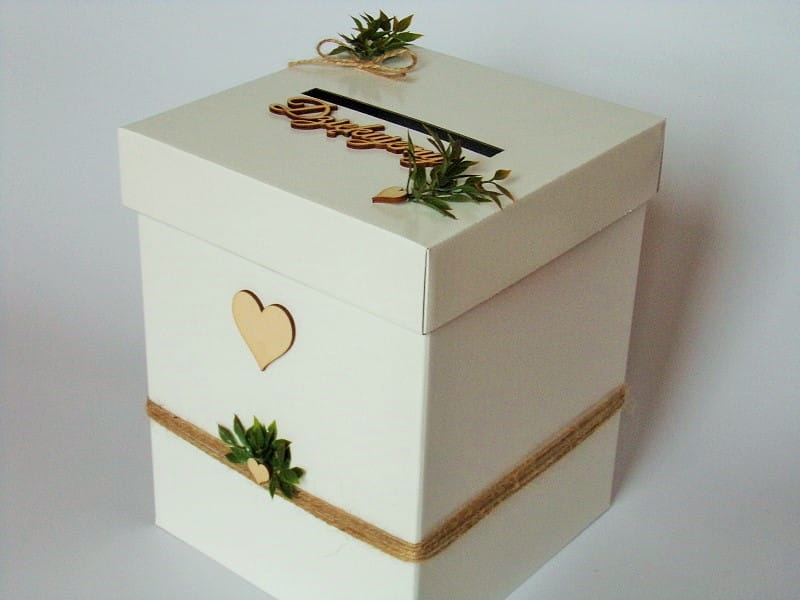 Pudełko na obrączki, na koperty od gości, wieszaki - komplet ślubny rustykalny