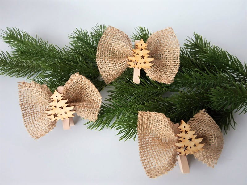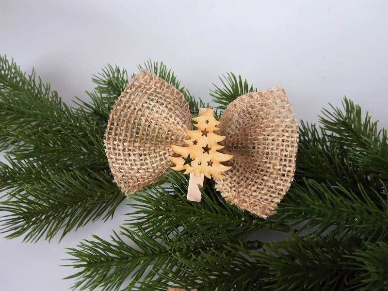 SB49 * Kokardka na choinkę z juty z drewnianą choinką