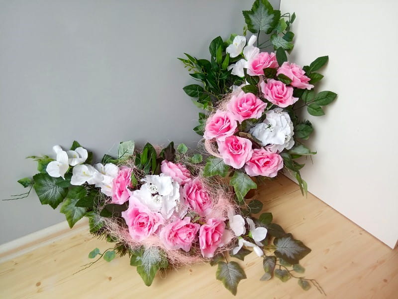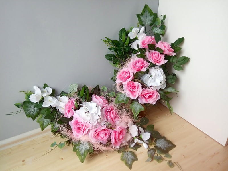 W skład zestawu wchodzi stroik na płytę i bukiet do wazonu z wkładem.