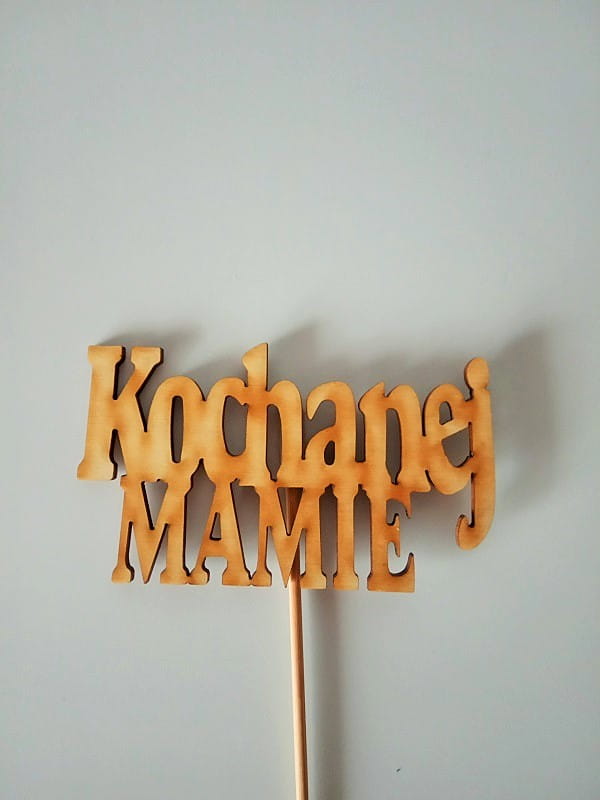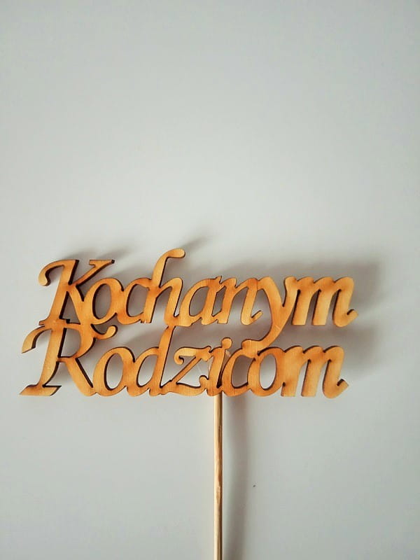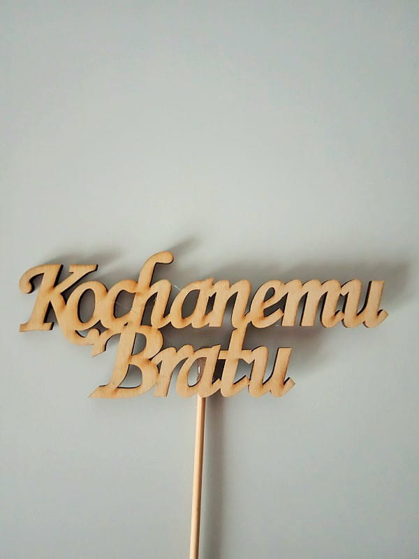 Zdobi ją drewniany napis (dołączony do stroika, do samodzielnego umieszczenia w stroiku).