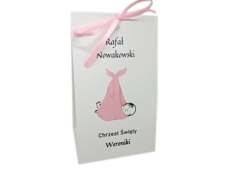 - wysyłane w formie rozłożonej (należy zgiąć wzdłuż bigu, umieścić w środku podarek i zawiązać tasiemkę)