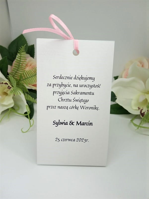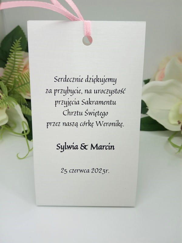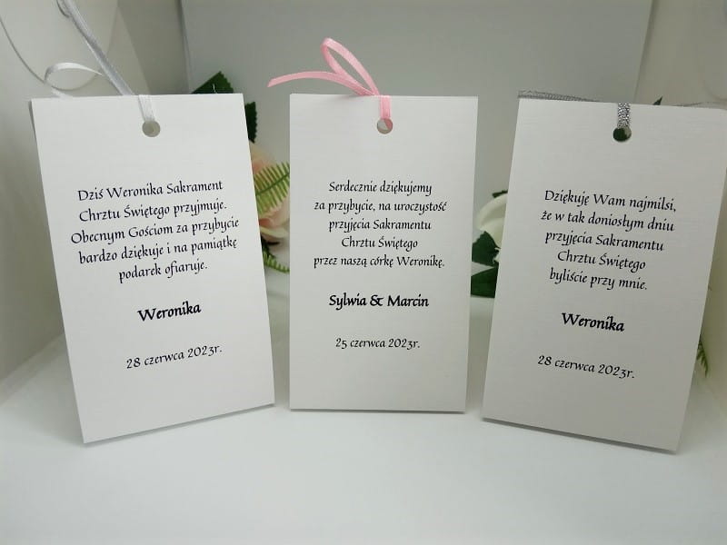 Podziękowanie-winietka może być wykonane z różnymi kolorami tasiemki 3mm.