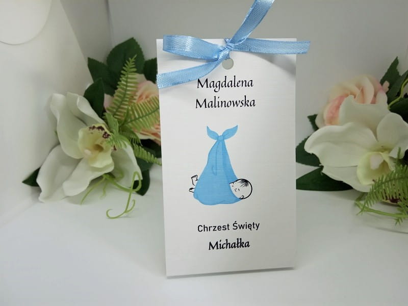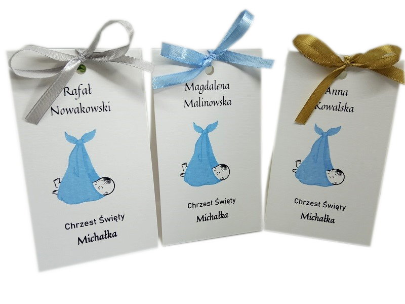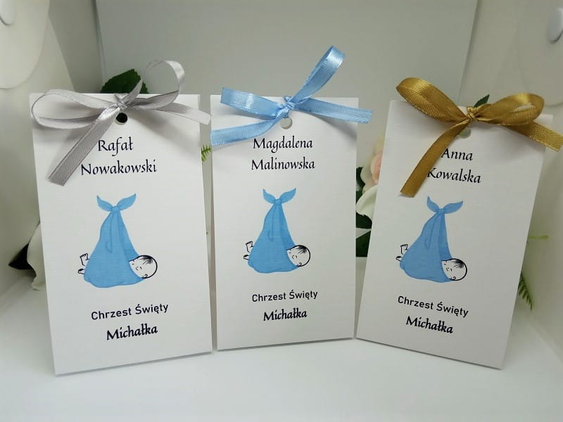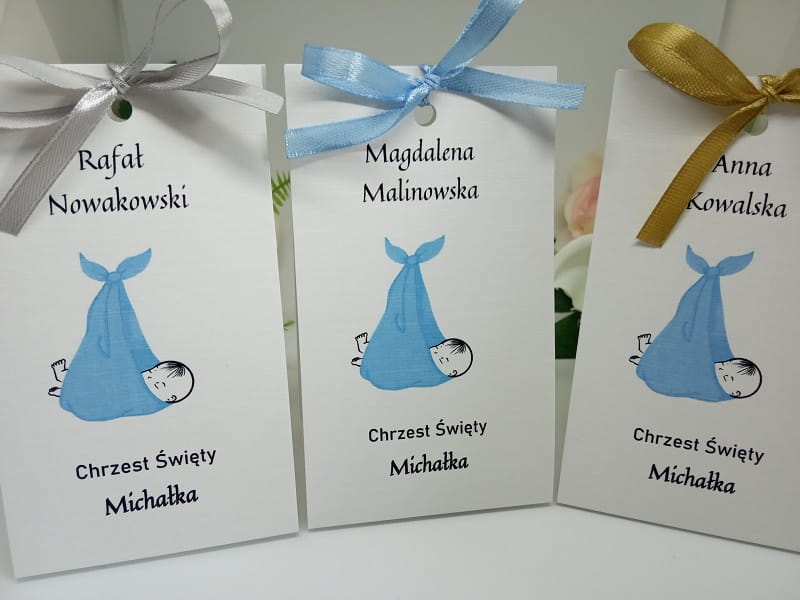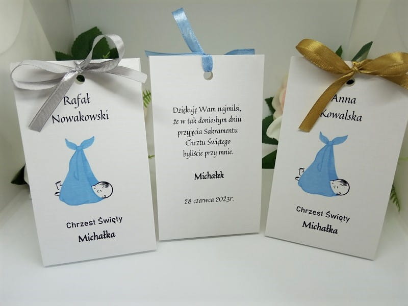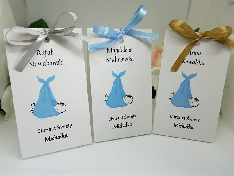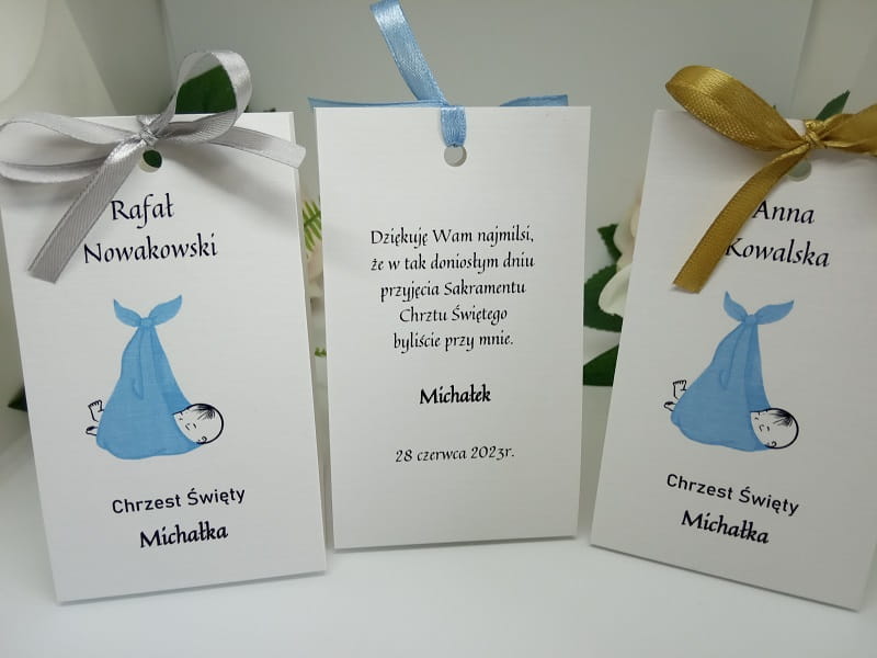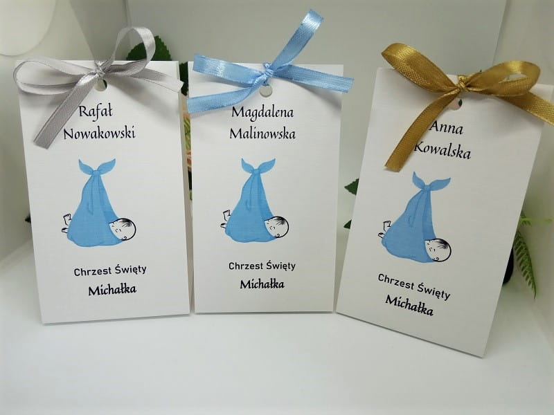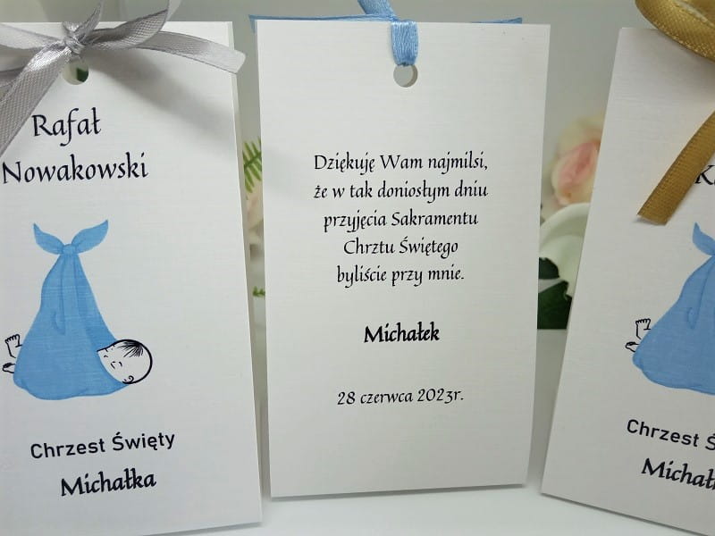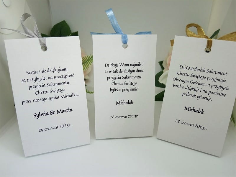 - na jednej stronie wydrukowane są dane gości, na drugiej podziękowanie za przybycie