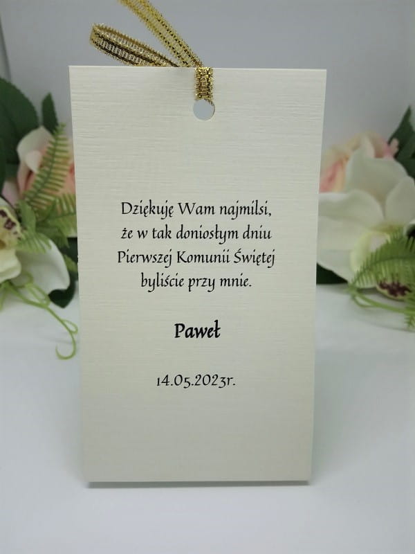 - na jednej stronie wydrukowane są dane gości, na drugiej podziękowanie za przybycie