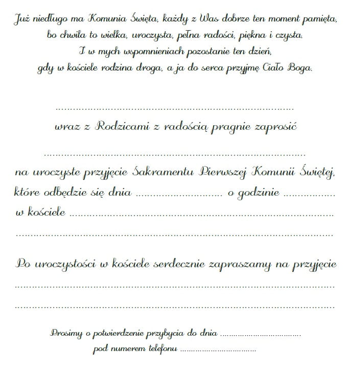 Zaproszenie na Pierwszą Komunię Świętą.