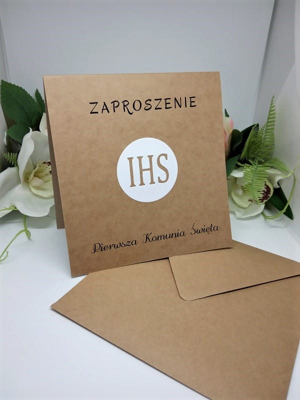- Do zaproszenia dołączona jest ekologiczna, brązowo-szara koperta.