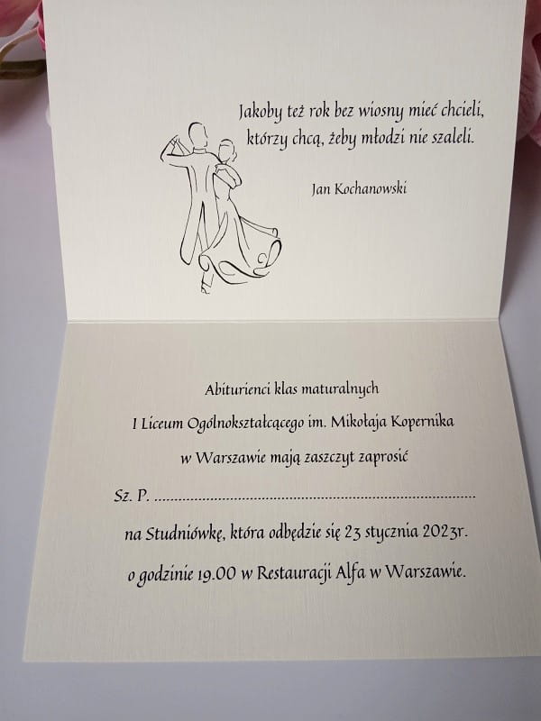 Subtelne, delikatne zaproszenie na Studniówkę.