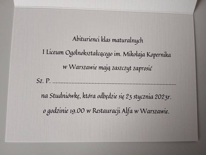 Subtelne, delikatne zaproszenie na Studniówkę.