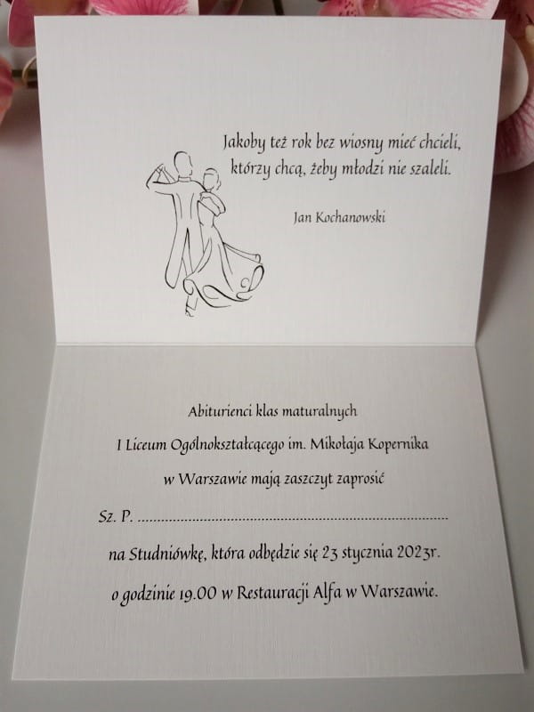 Subtelne, delikatne zaproszenie na Studniówkę.