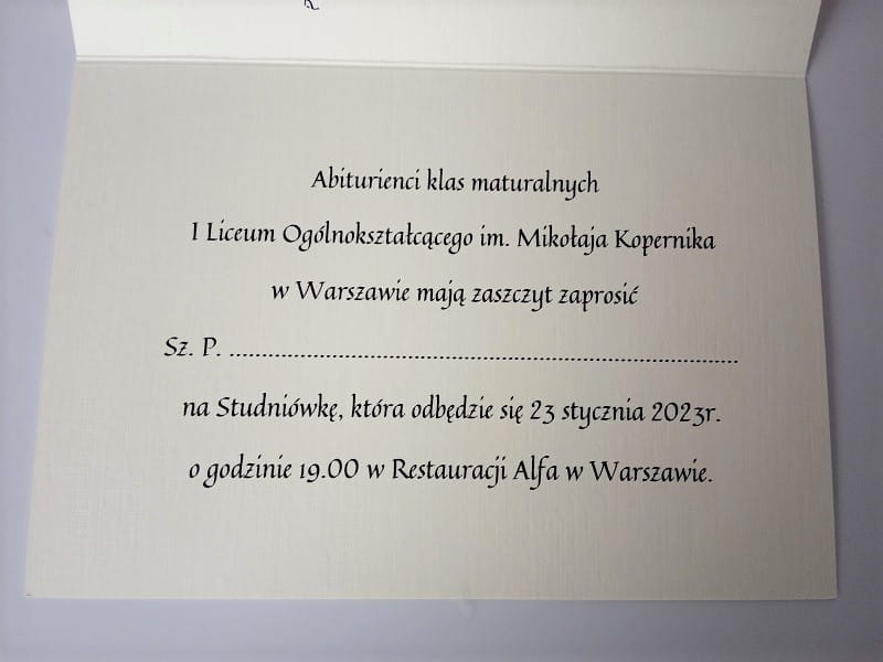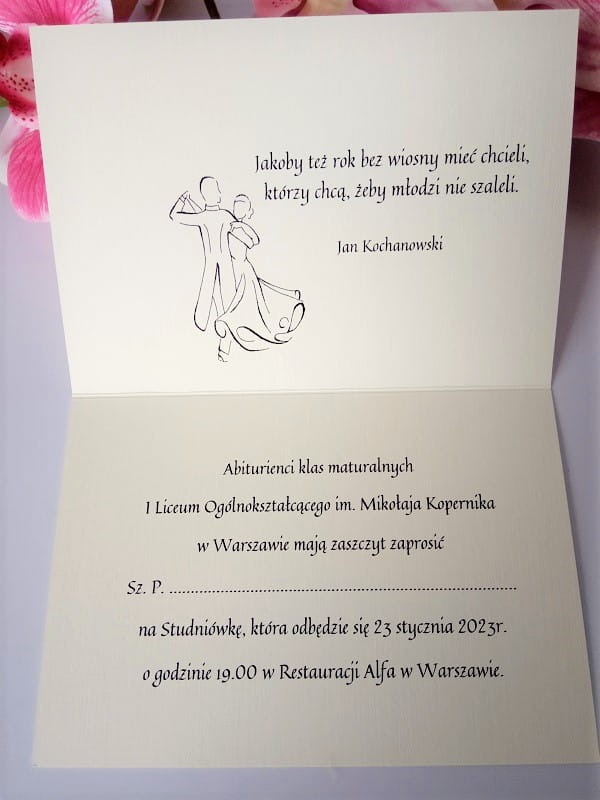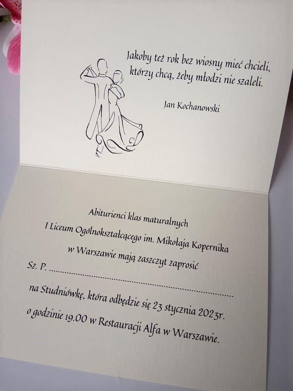 Subtelne, delikatne zaproszenie na Studniówkę.