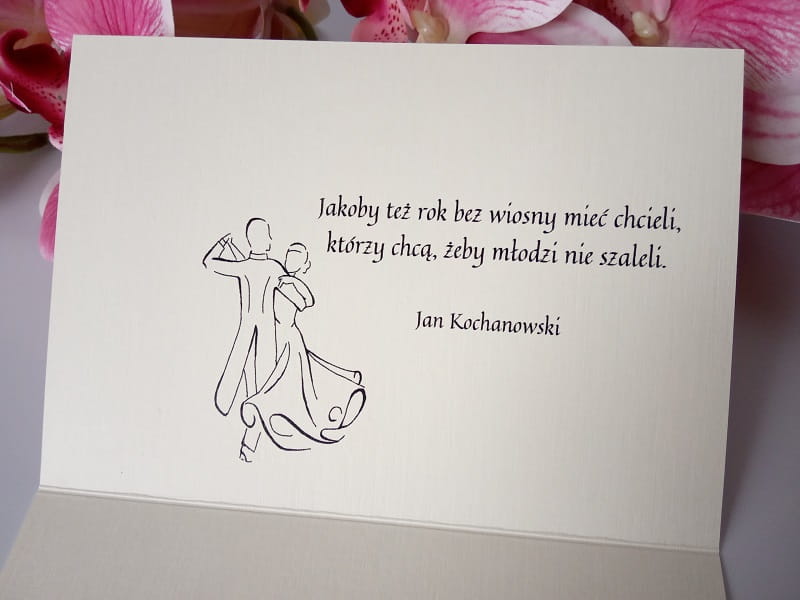 W środku zaproszenia może być umieszczony dowolny wierszyk i tekst.