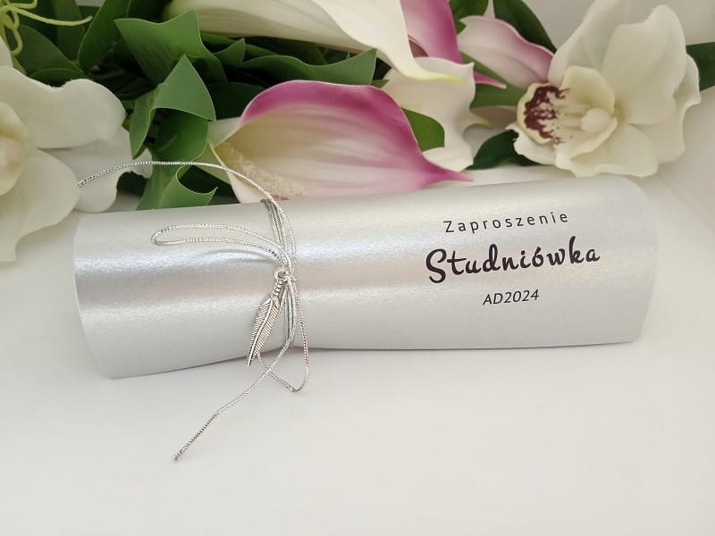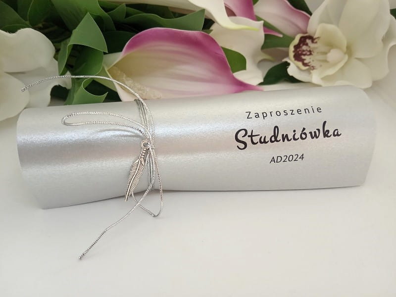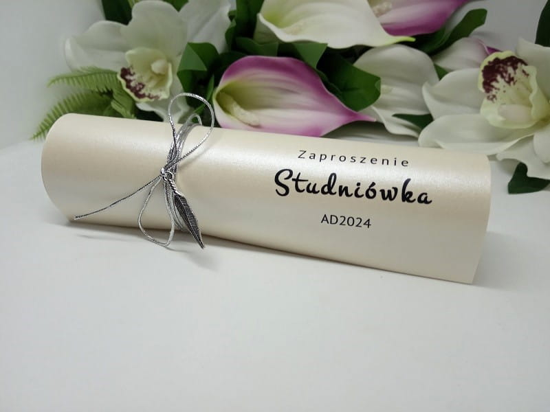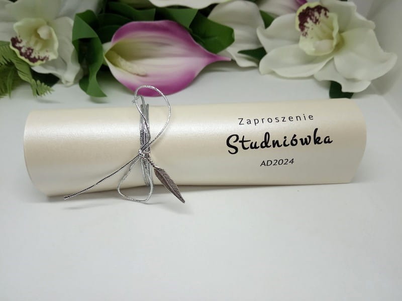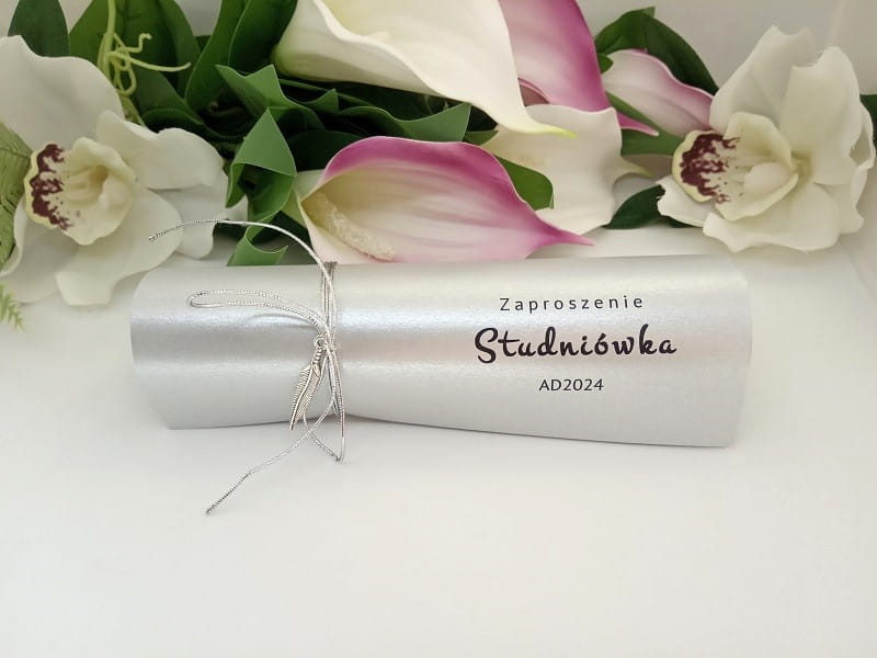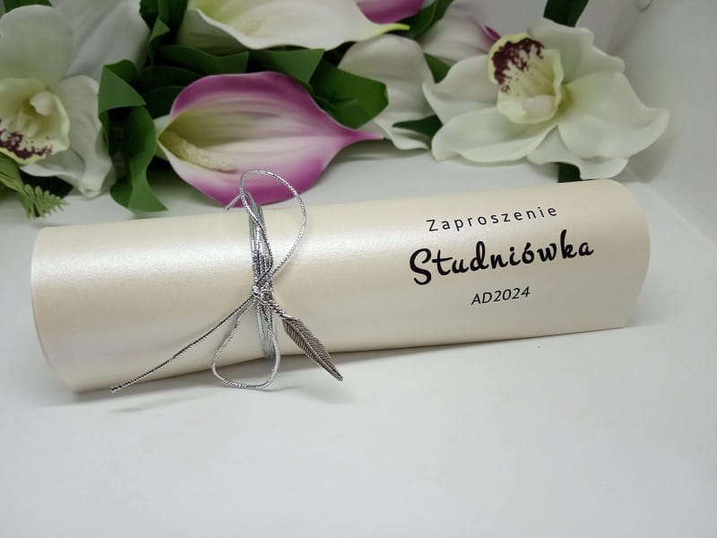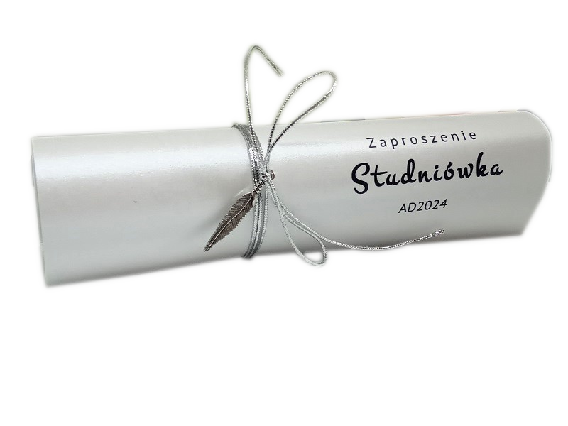 Subtelne, delikatne zaproszenie na Studniówkę w rulonie.