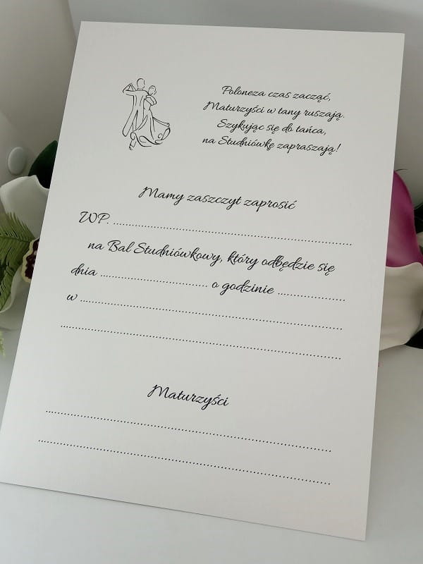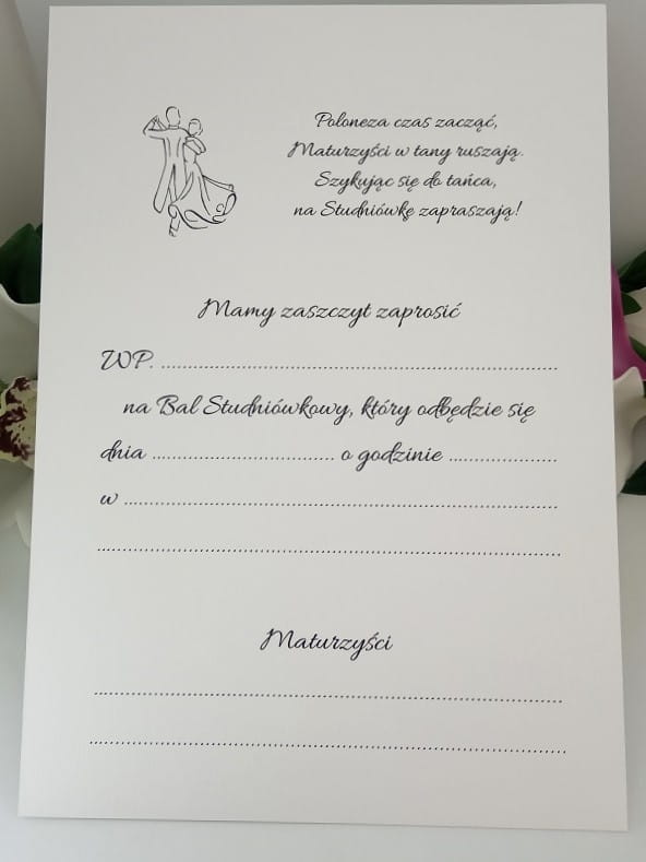 - W środku zaproszenia wydrukowany jest tekst do samodzielnego wypisania.
