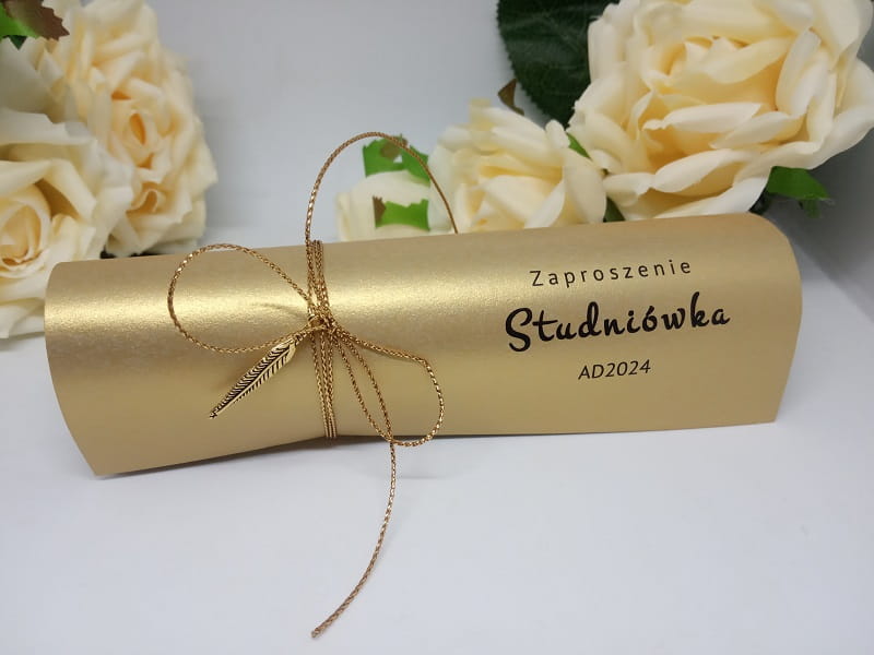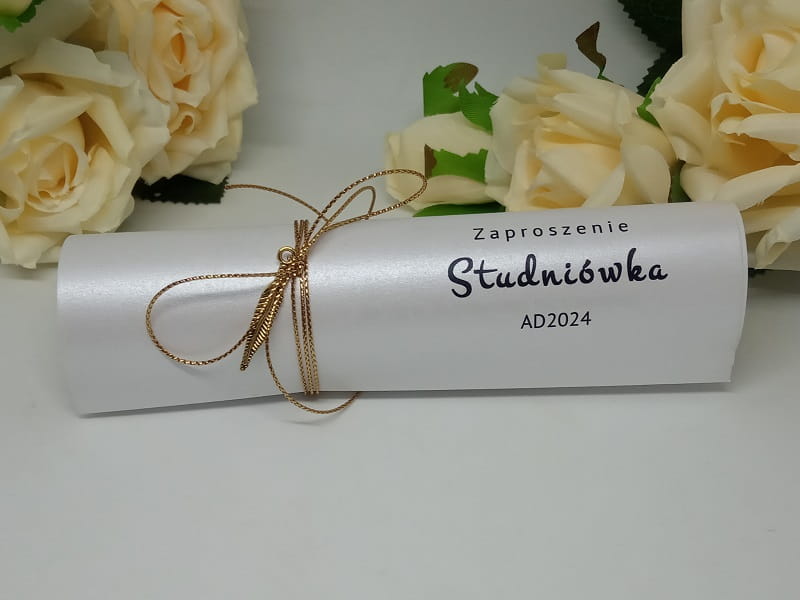 Subtelne, delikatne zaproszenie na Studniówkę w rulonie.
