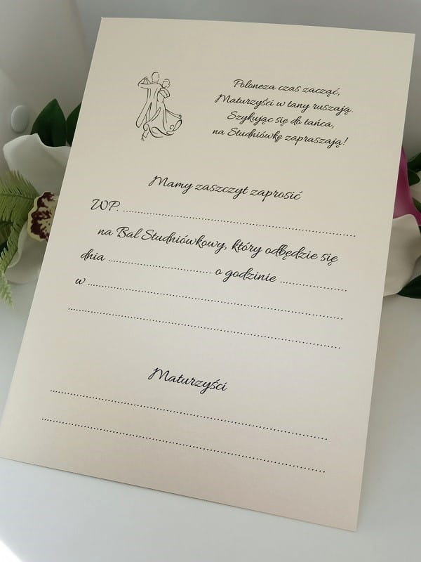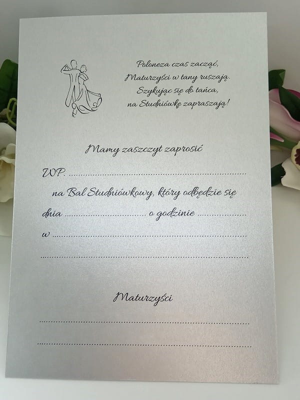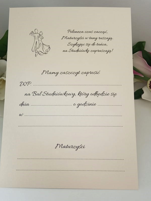 - W środku zaproszenia wydrukowany jest tekst do samodzielnego wypisania.
